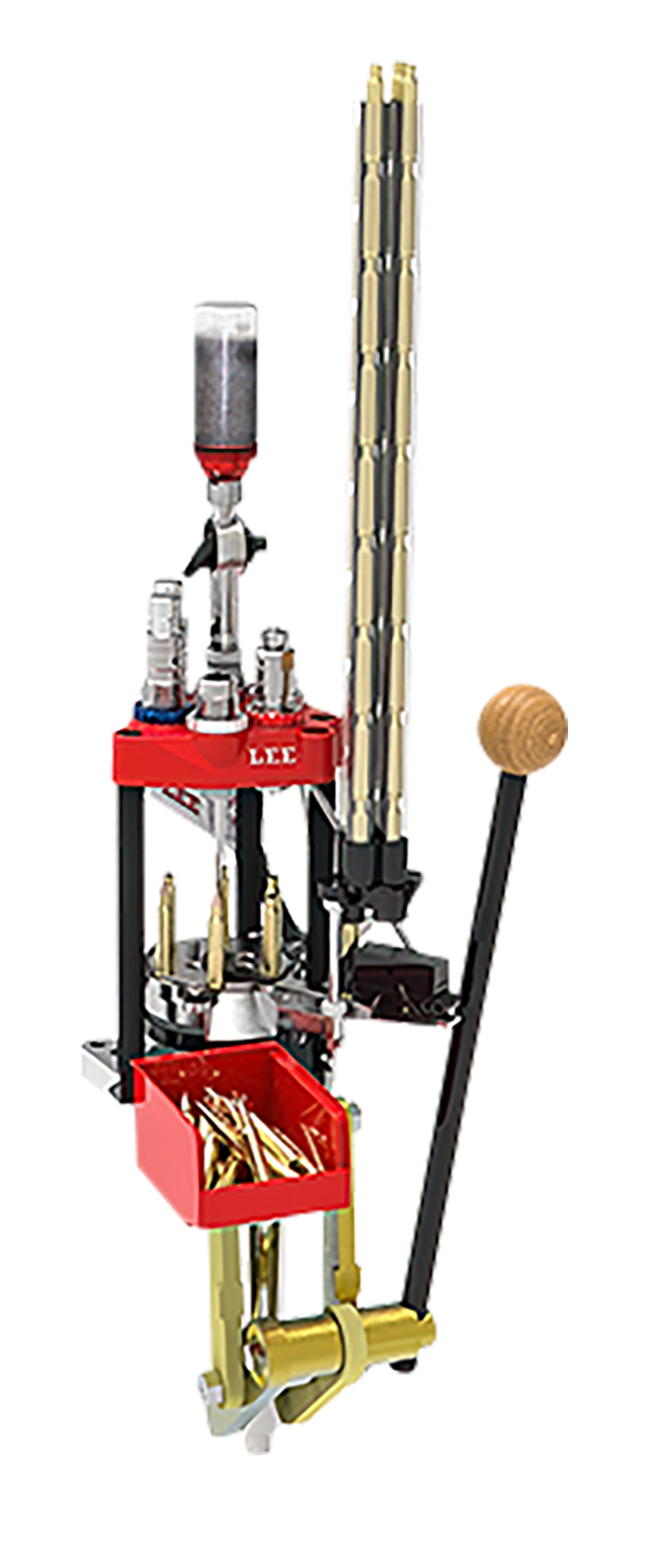 This 38 special six pack pro kit includes six pack progressive press, auto drum powder measure, shell plate, universal case feed magazine, and lee breech lock dies (carbide full length sizing die, powder through expanding die, bullet seating die, and instructions with load data).Carbide factory crimp die is sold separately, available as an accessory.The 357 magnum can also be reloaded with this kit.Its six stations allows any brand of die to be used in line bullet feed dies, powder check dies and such.Its simple and reliable automatic indexing has just one moving part, replaceable in seconds, and no tools required.It also never requires adjustment.The stroke and clearance sufficient for largest magnum rifle cases.It also uses the same all steel linkage found on the classic cast 50 bmg press.Its massive 28.4mm ram glides through 82 mm of solid steel giving the ram over 7300 mm of solid support.The spent primer tube collects dirty and gritty spent primers.All dies securely fastened in the upper die carrier with lee smart lock bushings.No more turret, tool head to replace, or move during use.The automatic priming system is simple, reliable, and safe with any brand or size of primer.There are primes at the bottom of stroke, so all six stations are available for operations.The automatic case inserter works with any case and can be manually fed through the convenient loading port.Which includes the lee case feed magazine.This works with most handgun cases and all ar rifle cases.Its easy to set case retainers on every station.No springs, plugs or buttons to lose or tinker with.The cartridge changes over in seconds, including primer size with no adjustments.The automatic case ejector reliably whisks away your completed round to the ammo bin.This press includes combination tool rack, bin bracket, along with free ammo bin.