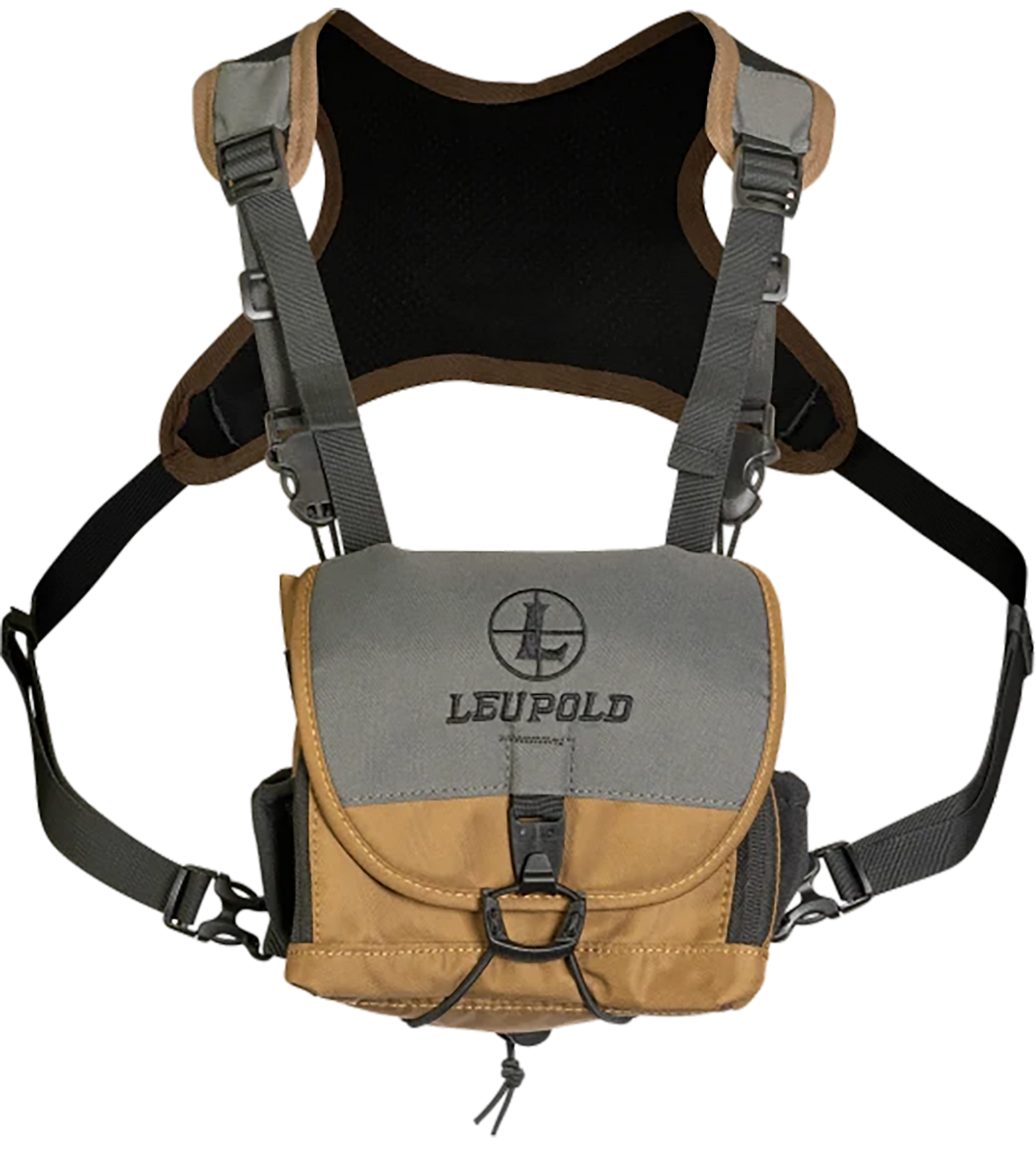 Leupold's go afield bio harness xf features 600 denier nylon outer material with tpu backed with breathable air mesh back panel.It utilizes a non-elastic strap/tether system, one-handed closure system, side attachment strap system and side and front accessory pockets.