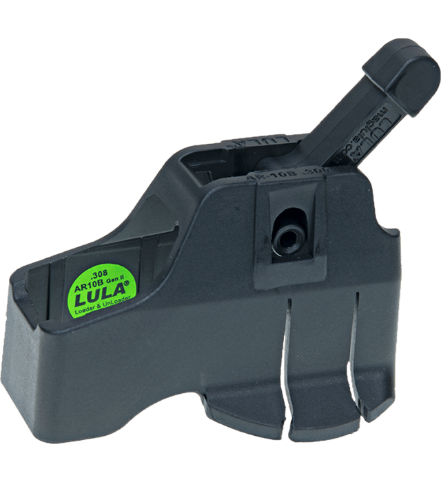 The maglula loader/unloader is simple to use in either loading or unloading mode.The loader/unloader eliminates thumb pain, wear on feed lips, and prolongs magazine life.It is crafted from durable reinforced polymer, lightweight, and is reliable in all weather.This model is compatible with 5, 10, 15, 20, and 25 round ar10b gen ii type metal 7.62/.308 win magazines.