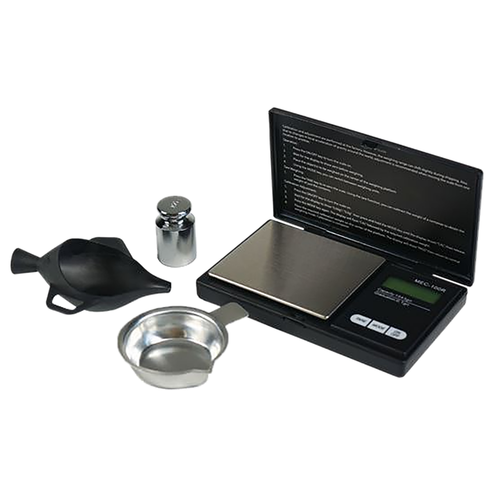 Measure your powder precisely with the mec scale kit.Kit contains scale, pan, and 100g calibration weight.