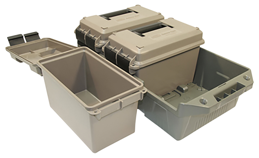 A rugged tactical carrying crate for multi-caliber ammo storage and transport.Comes with three, o-ring sealed 50 caliber ammo cans.Each can nests within a rugged polymer crate to form a compact storage and transportation solution.Loaded crates are stackable, with carry handles and tie-down points on either end for atv attachment.Made of rugged polypropylene.Model: 3-Can Ammo CrateMaterial: PolypropyleneCapacity: 30 lbsProofs: Water ResistantHardware: LatchesView more