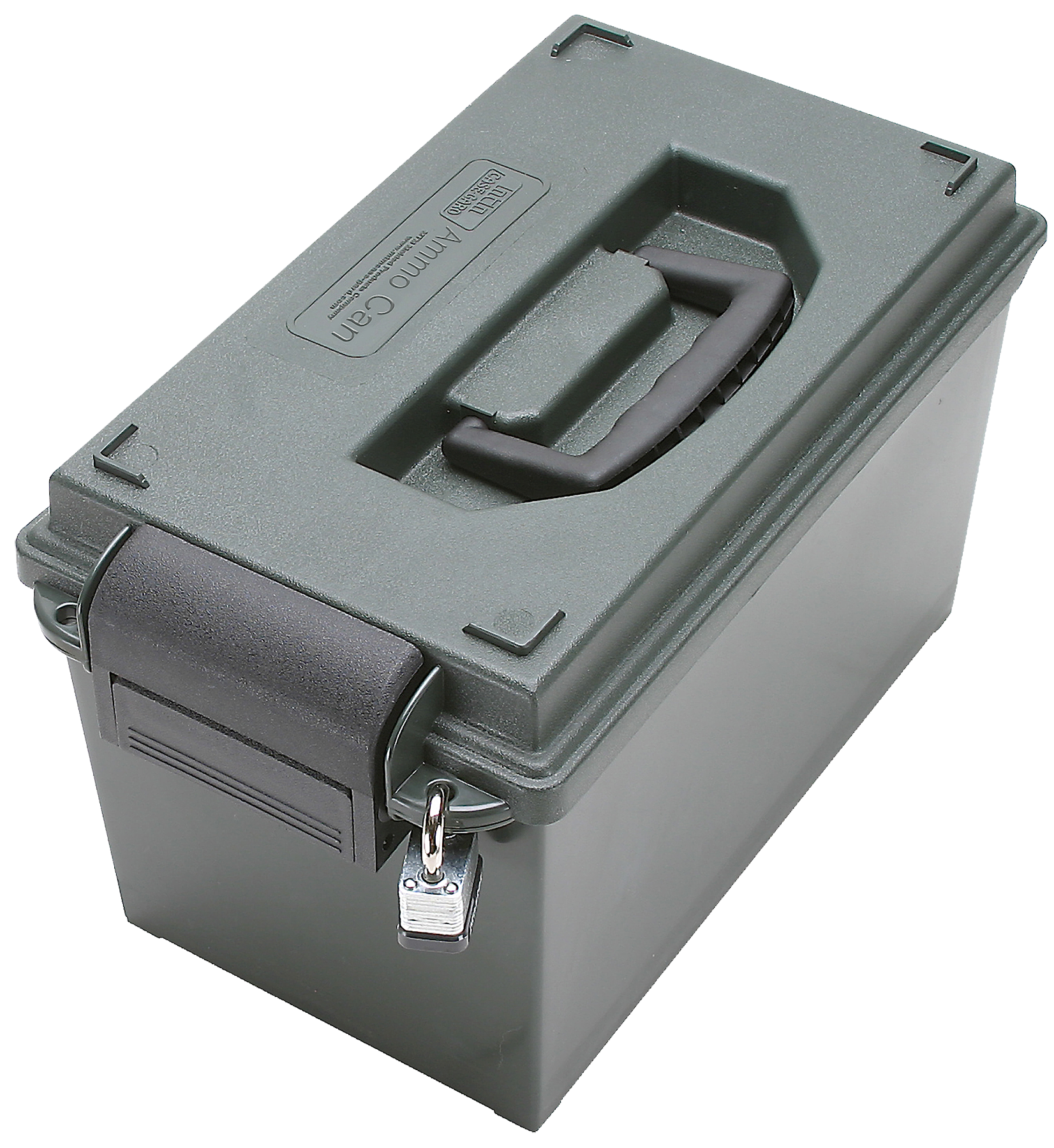 This o-ring sealed ammo can is molded out of rugged polypropylene plastic with a reinforced bottom.It is tough, durable and water resistant and is suitable for bulk and boxed ammo, decoy weights, dog food or storage in damp places.It offers a heavy-duty latch, double padlock tabs and molded-in ridges for slip-resistant stacking.