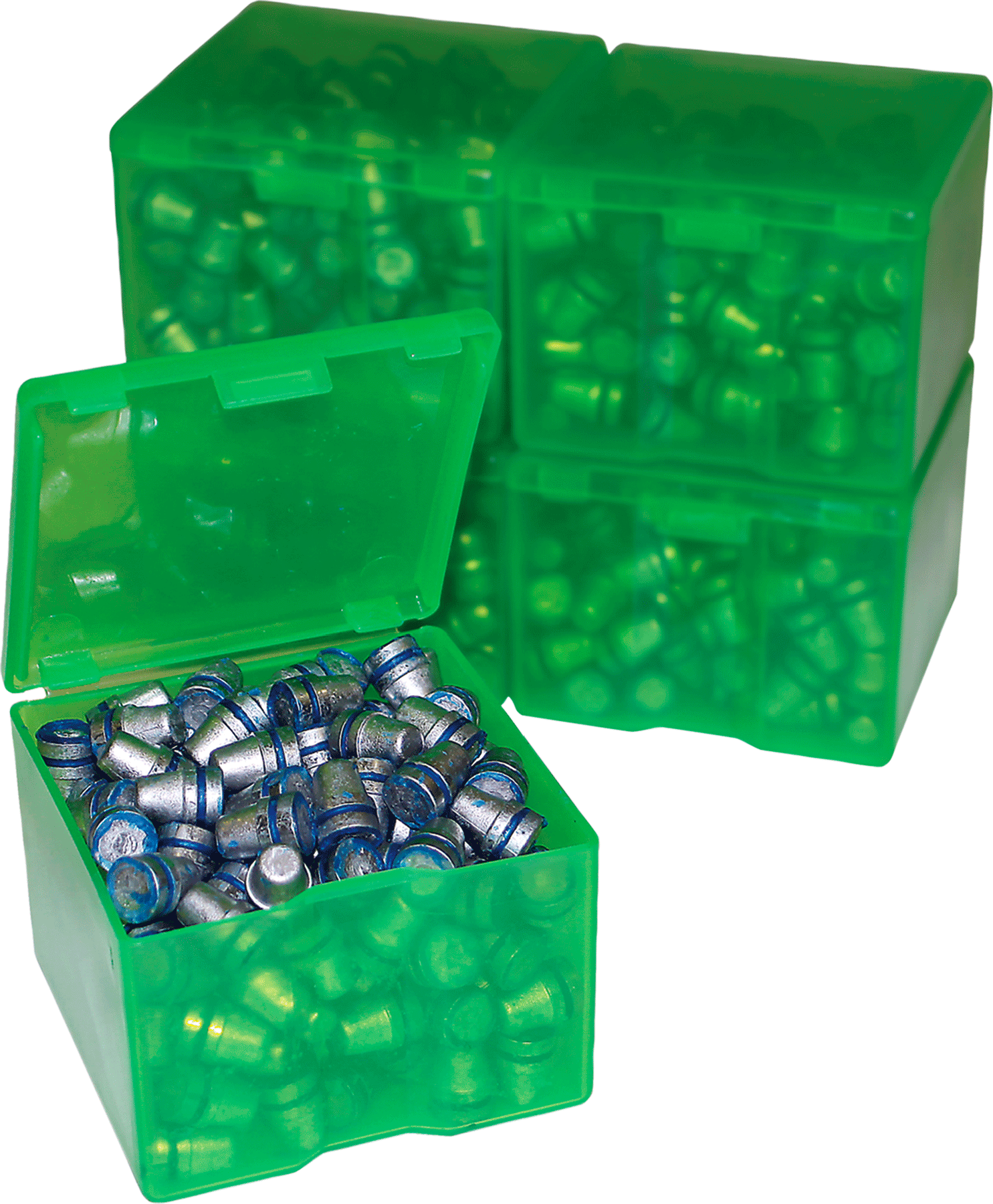 Mtm makes it easier for bullet casters to separate and store their masterpieces with this 2-pack of bullet boxes made from green tinted clear polypropylene for easy identification.It holds 160 205 gr.45 acp cast bullets or more than 200 9mm cast bullets.Caliber labels are included for marking the boxes.Type: Ammo BoxModel: Cast Bullet BoxFinish: Clear GreenSize: 2 packMaterial: PolypropyleneCapacity: 200 9mm bulletsDimensions: 3.40" x 3.40"...View more