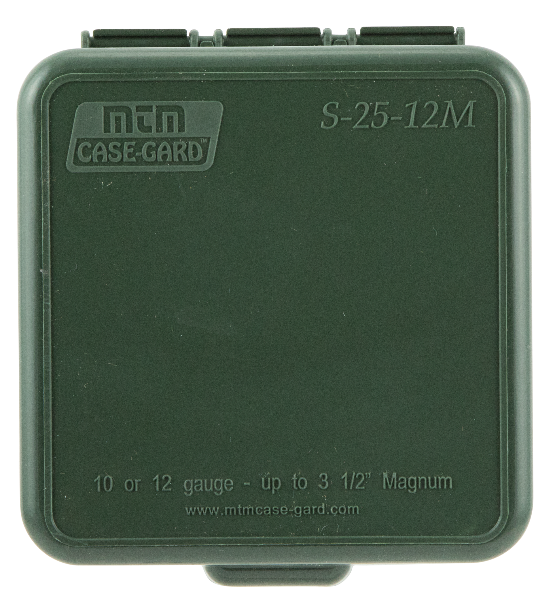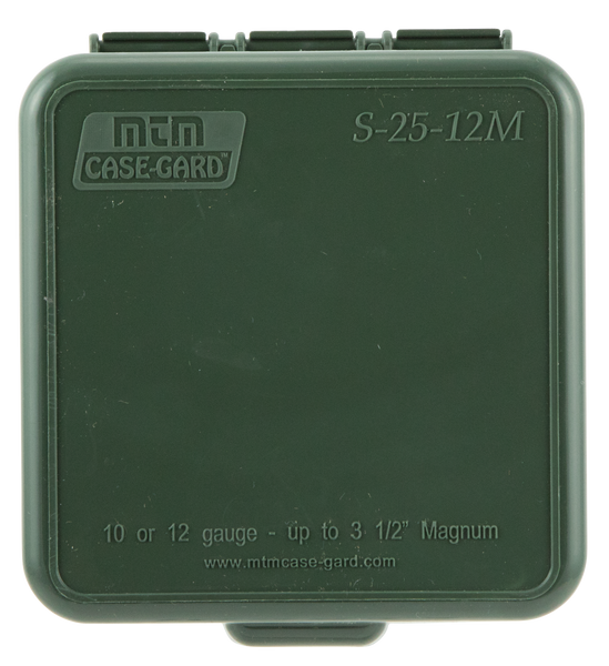 This shotshell case features a see-through forest green finish and can hold up to 25 rounds of 10/12 gauge shells.It can also be use to organize some brands of 12 gauge choke tubes with a maximum length of 3.1".