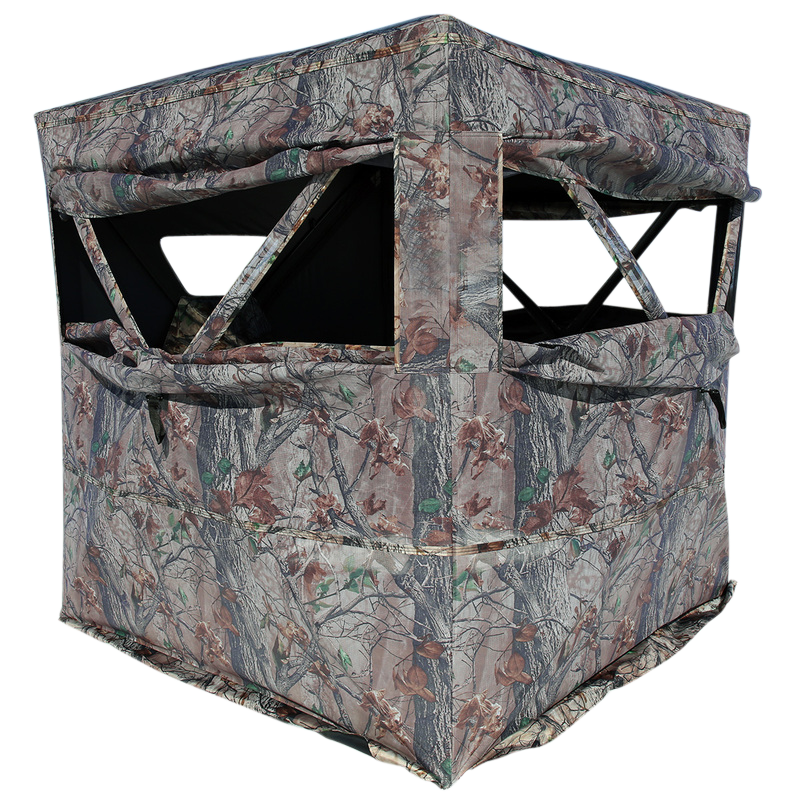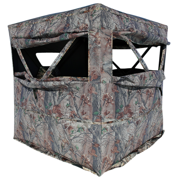 The muddy prevue 2, 2 person blind is easy to set up.The blind features two full width panoramic windows, zippered door entrance, blacked out interior, rear viewing window and silent slider window adjustments.Dimensions 53x53", shooting width 67x67".Includes carry bag, backpack straps and 8 steel stakes.Season: AllHeight: 66"Weight: 12.30 lbsColor: Epic CamoView more