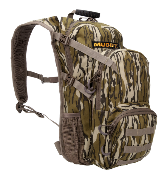 Pro 1075-day pack/lite hunting pack is made of 100% poly brushed quiet (yet durable)material.Main compartment is complemented by 3 front pockets of different sizes.Camo is in original mossy oak bottomlands with side mesh pockets.