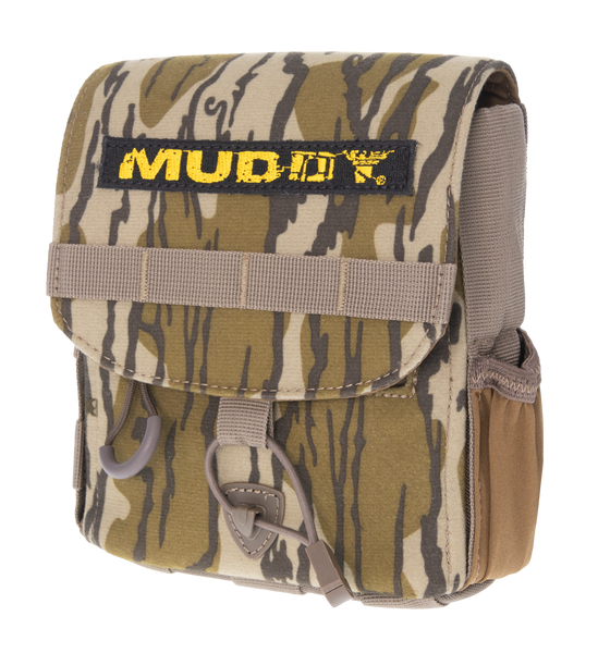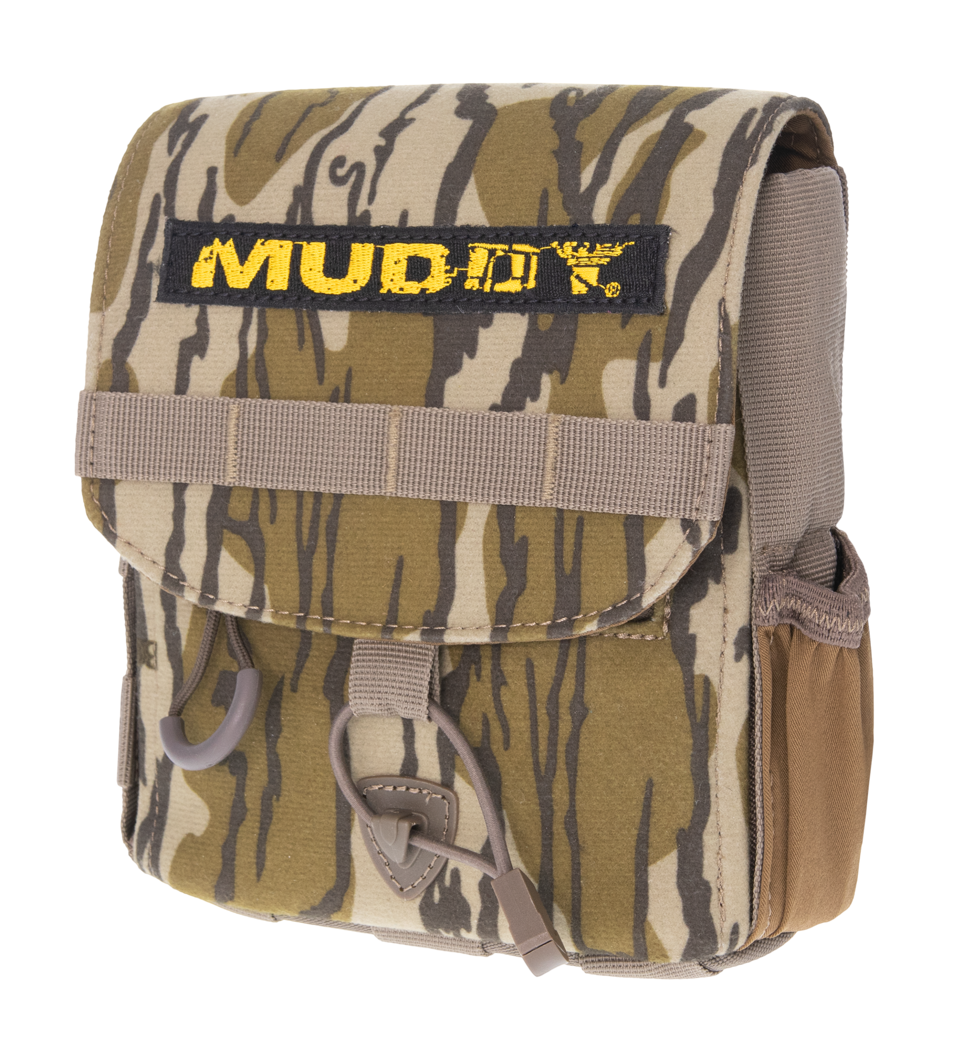 Main compartment with flip lid on a quiet elastic retainer and side pocket for wind indicator.Padded back panel for added comfort.Original bottomland camo.