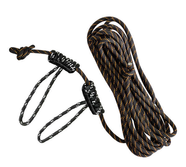 The muddy safe-line helps keep you safe from the moment you leave the ground to the time you return.It is 30' in length and is constructed of braided nylon with a reflective material that enhances daytime and low-light visibility.It features two purik knots which slides easliy up and down.The safe-line stops you immediately and can be used with any ladder stand or hang-on stand.(has a weight rating of 300 lbs)