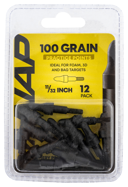 The 3d practice points are ideal for target practice in foam and cardboard targets.These easy to pull and easy to replace field tips are made out of precision machined durable steel.Type: FixedModel: 3D Practice PointsWeight: 100 grColor: BlackQuantity: 12 PackMaterial: SteelView more
