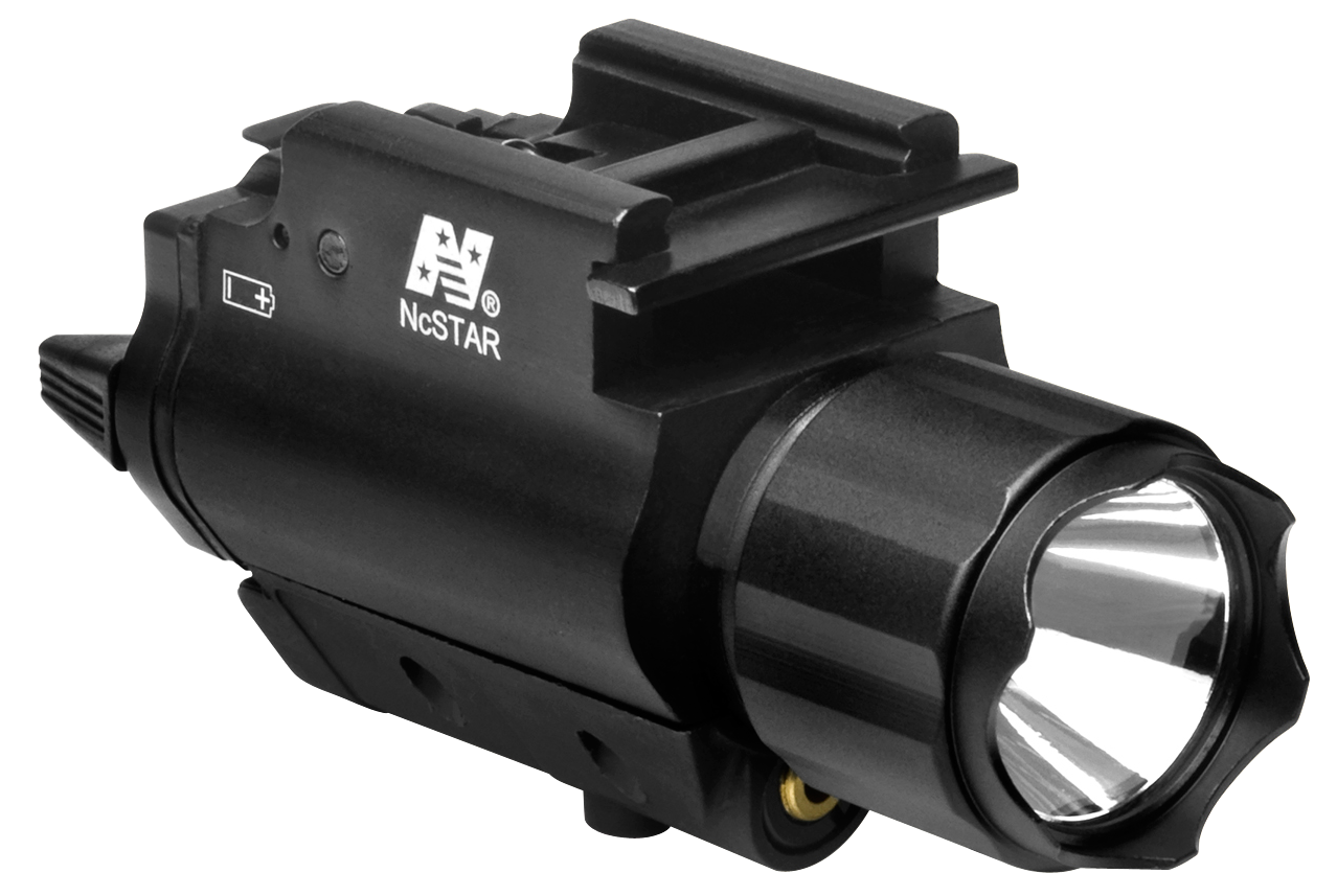 This three-watt flashlight puts out a white-hot 200 lumens.Right below the flashlight is an integrated, fully adjustable red laser.A small toggle switch in the rear allows you to illuminate the flashlight and laser separately, or both at the same time.A quick release weaver-style mounting system allows the unit to be removed from the pistol, rifle, or shotgun with speed and ease.This combo is crafted from aluminum and reinforced nylon and uses 2 cr123a battery.