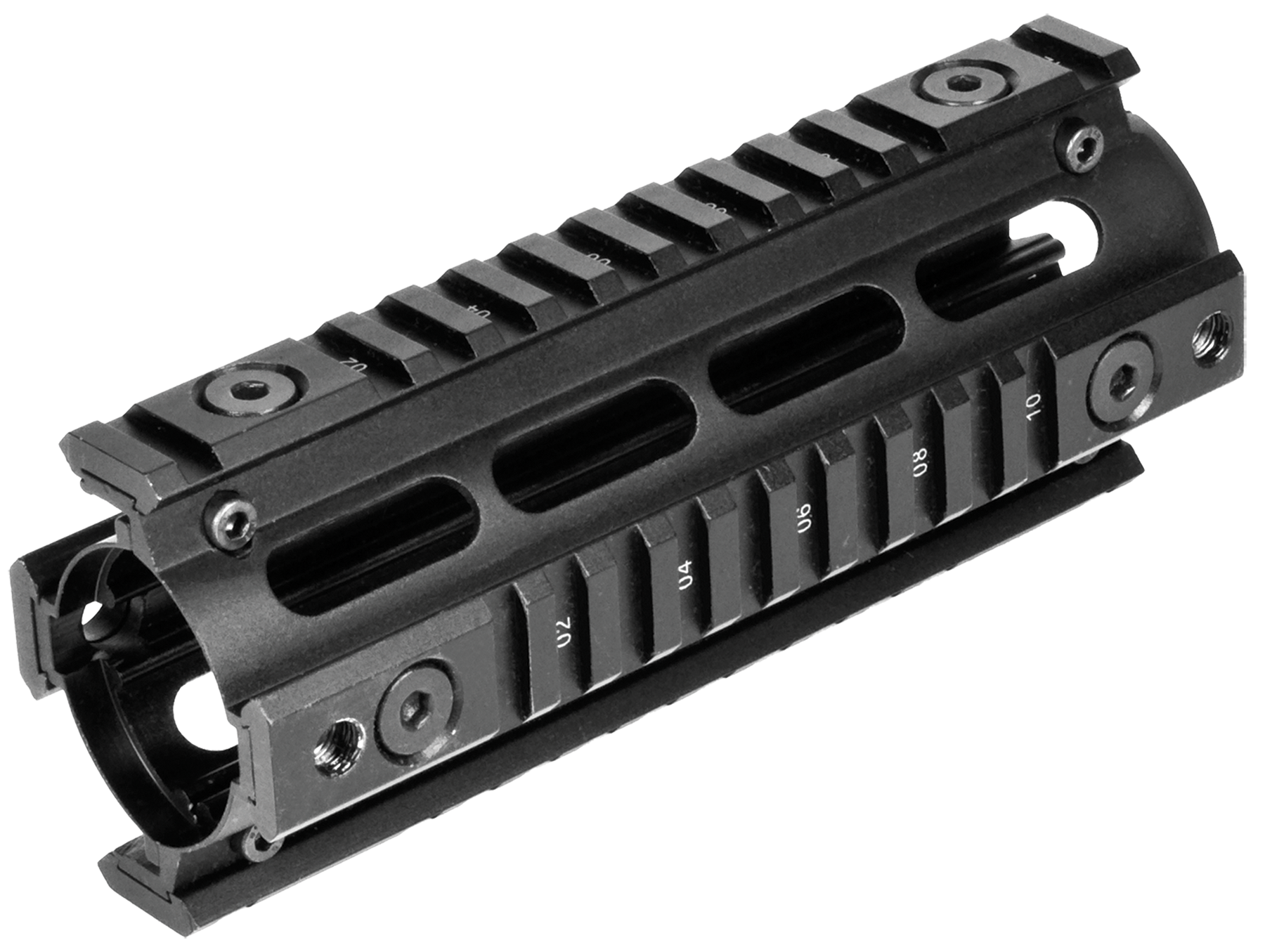 Ncstar ar-15 quad rail system is designed to replace your standard ar-15 hand-guards installing in minutes with no gun smithing or modifications required.The removable weaver style rails are customizable so you can attach forward grips, flashlights, lasers, or any other type of rail mounted accessories.It is constructed of hard anodized aluminum to prevent corrosion for lasting durability.This model is 6.7" long and has a black anodized finish.