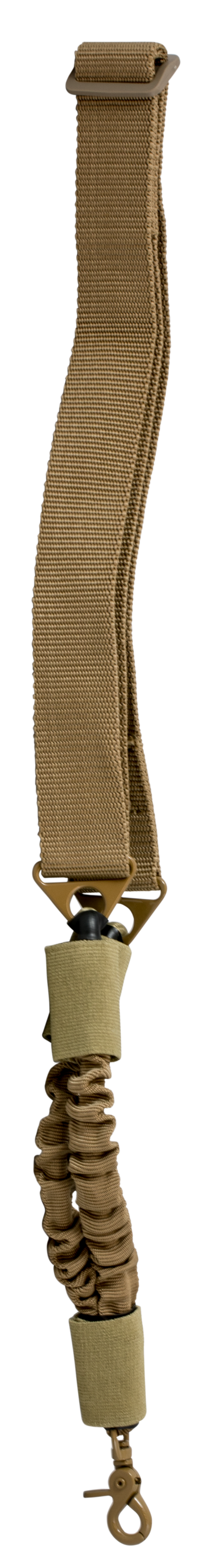The single point sling designed for fast attachment and removal.Single point is great for a primary rifle for full mobility, but retains weapon if the need arise to transition to secondary.Heavy duty bungee cord for complete comfort and stability.Single point clamp attachment will fit ar style single point yoke rings.Design: Adjustable BungeeType: BungeeLength: 44"- 60"Width: 1.50"Color: TanMaterial: NylonView more