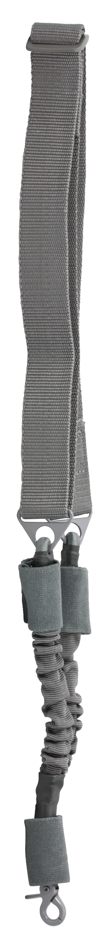 The single point sling designed for fast attachment and removal.Single point is great for a primary rifle for full mobility, but retains weapon if the need arise to transition to secondary.Heavy duty bungee cord for complete comfort and stability.Single point clamp attachment will fit ar style single point yoke rings.Type: BungeeLength: 44"- 60"Width: 1.50"Color: Urban GrayMaterial: NylonView more