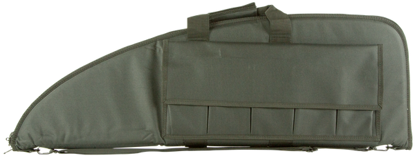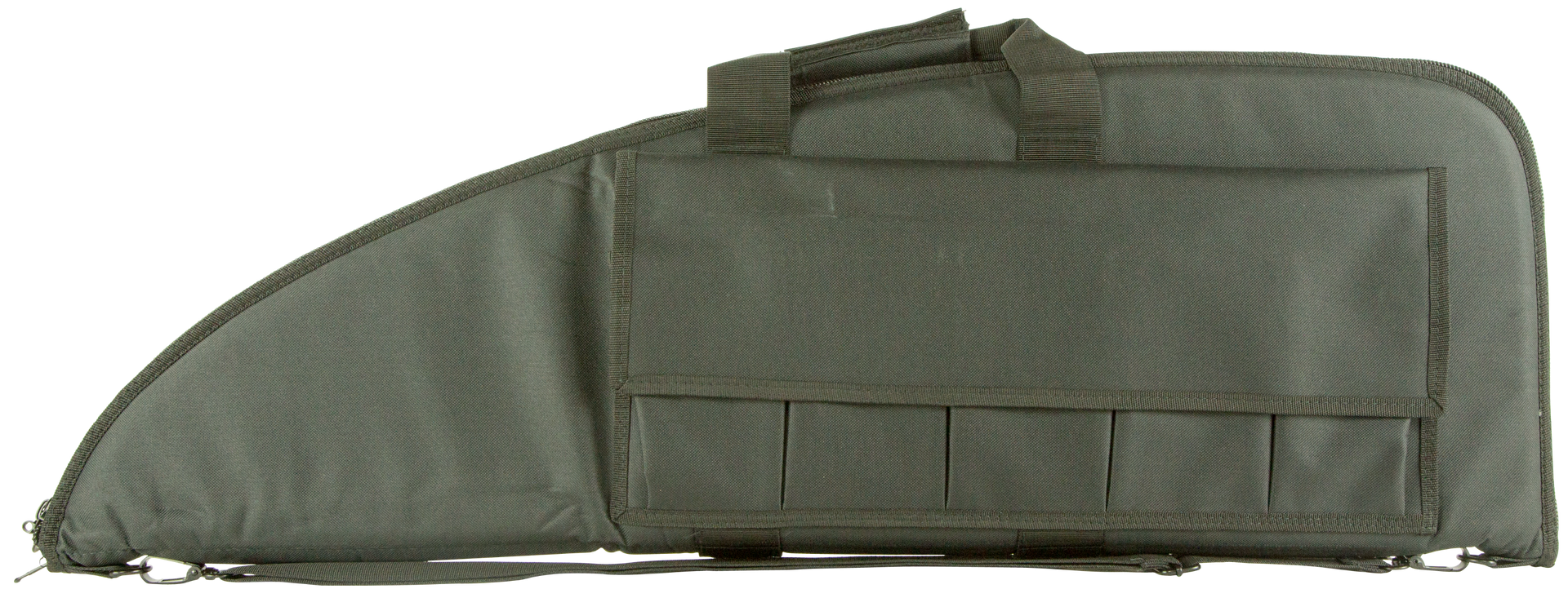 This rifle case features high density foam inner padding, heavy duty metal double zippers, metal d-rings, heavy duty carry handle strap with hook and loop flap and a i.D.Holder on the outside of the case.Type: Rifle CaseColor: BlackDimensions: 13" x 36"Hardware: Heavy Duty ZipperPadding: FoamGuns Held: RifleView more