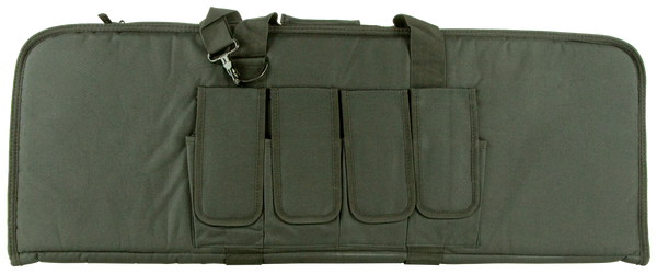 Vism series carbine gun case is designed for carbines that are less than 36" in overall length.This gun case has many popular features like heavy duty zippers that are lockable, four external magazine pouches, padded carry handle, and adjustable shoulder straps.This is a great case for protecting and transporting carbines to the range.It features four external rifle magazine pouches with individual magazine flaps with hook and loop fasteners, heavy duty zippers that can be locked with a small pad lock, and padded carry handle straps and a shoulder sling is included.Note: gun not included.