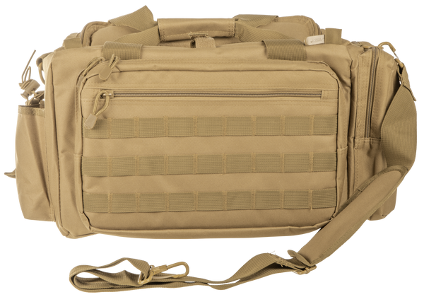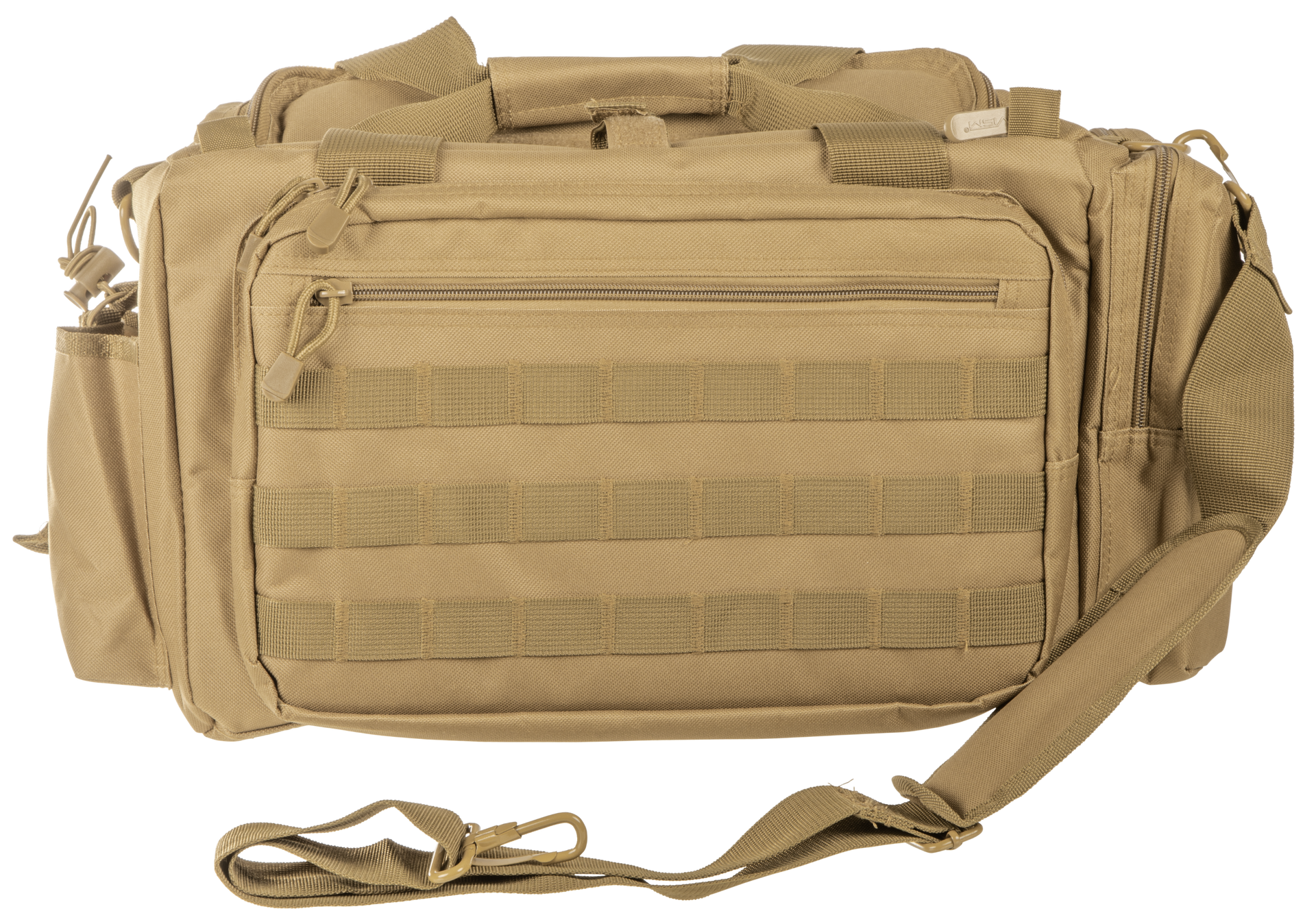 The competition range bags main cover has loop fastener panel for hook and loop patches and name tape and a top hook and loop fastener loop for securing hearing protection for easy access when at the shooting range.Main zippered center compartment (7.75" w x 15.5"l x 10"h) with two internal end pockets with hook and loop fastener, flaps and two long padded side pockets perfect for storing handguns.Heavy duty metal zipper tabs have grommets for a small pad-lock (not included) to lock the compartment and help secure your gear.Front padded compartment can help keep your magazines organized.Internal elastic loops can hold up to 8 each ar15 magazines or up to 16 each double stack pistol magazines and a separate internal padded pocket.Large metal d-rings on the ends of the bag, wide padded shoulder strap with metal clasp hook.