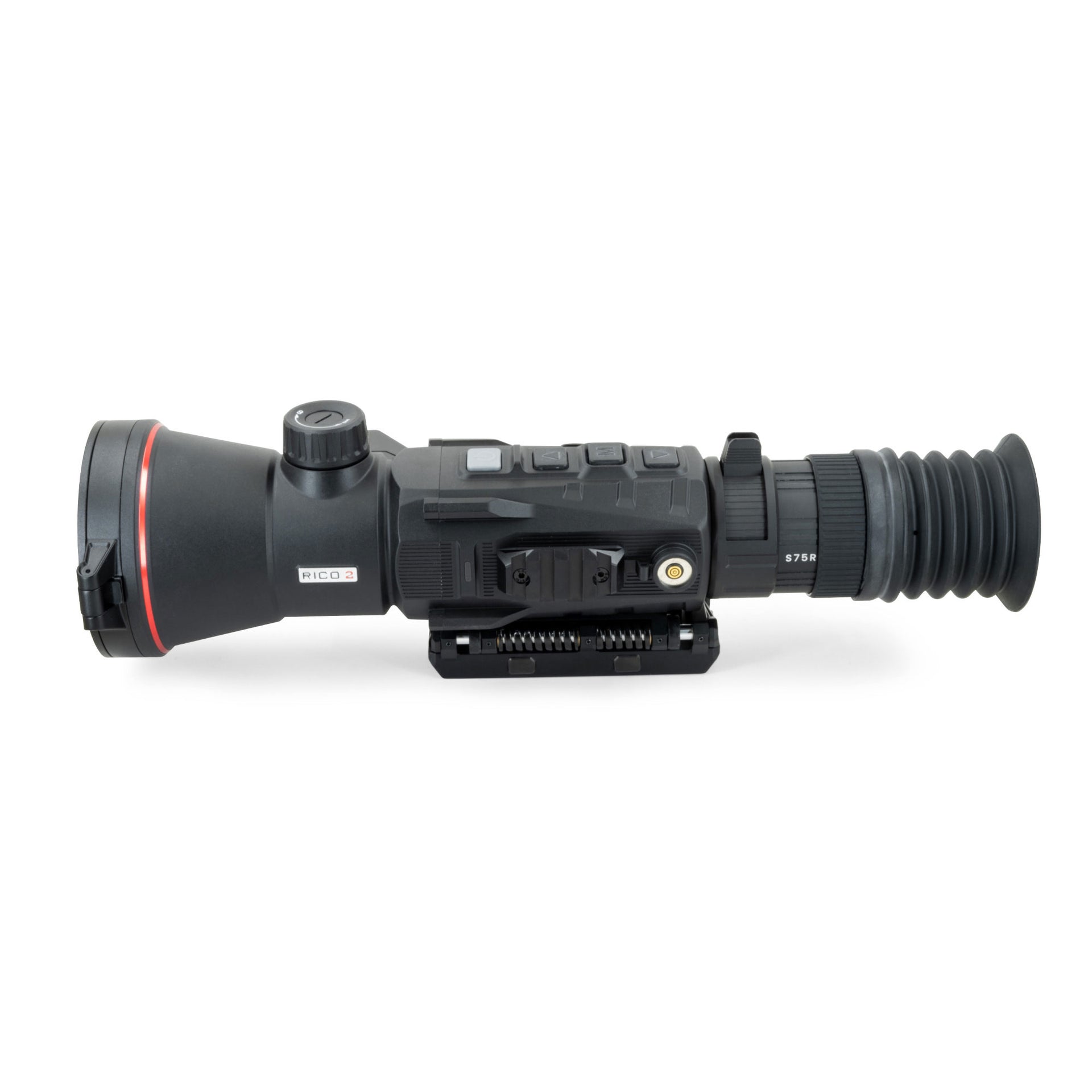 The RICO 2 (Rugged Infrared Compact Optic) delivers cutting-edge thermal performance with advanced imagingtechnology and precision-driven features. Available in four models—S75R (1280×1024, 75 mm), H75R (640×512, 75 mm), H50R(640×512, 50 mm), and L42R (384×288, 42 mm)—each boasts a ≤15 or ≤18 mK NETD rating for exceptional thermal sensitivity.A high-resolution 2560×2560 round AMOLED display provides a comfortable and immersive viewing experience, while the smooth digital zoom control ensures seamless, intuitive operation. The integrated 1,200-yard laser rangefinder pairs withan advanced ballistic calculator—just input bullet velocity and ballistic coefficient, and the system automatically adjusts for drop based on target distance. Additional features include a quick-detach mounting system, spare battery, magnetic charging port, recoil-activated video, and picture-in-picture mode. Built for serious shooters, the RICO 2 combines rugged durability with premium performance.