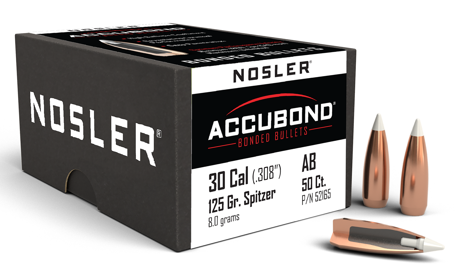 Accubond is designed to be a highly-accurate big game hunting bullet suitable for use on a wide variety of game.Its bonding process eliminates voids in the bullet core, and accubond marries nosler's traditional copper-alloy jacket with its special lead-alloy core.The result is a bullet that flies true, penetrates deep and retains its weight and won't cause extensive barrel fouling.The unique white polymer tip resists deforming and initiates expansion on impact.Nosler's solid base at the rear of the bullet acts as a platform for large diameter mushrooms.Boat tail configuration combines with the streamlined polymer tip for long-range performance and for easier loading.