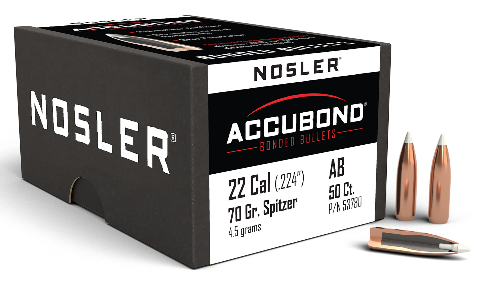 Nosler Accubond, Nos 53780 Accubond 22 70 Sptzr 50