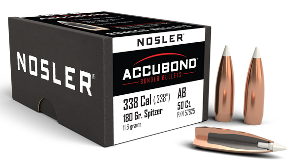 Accubond is designed to be a highly-accurate big game hunting bullet suitable for use on a wide variety of game.Its bonding process eliminates voids in the bullet core, and accubond marries nosler's traditional copper-alloy jacket with its special lead-alloy core.The result is a bullet that flies true, penetrates deep and retains its weight and won't cause extensive barrel fouling.The unique white polymer tip resists deforming and initiates expansion on impact.Nosler's solid base at the rear of the bullet acts as a platform for large diameter mushrooms.Boat tail configuration combines with the streamlined polymer tip for long-range performance and for easier loading.