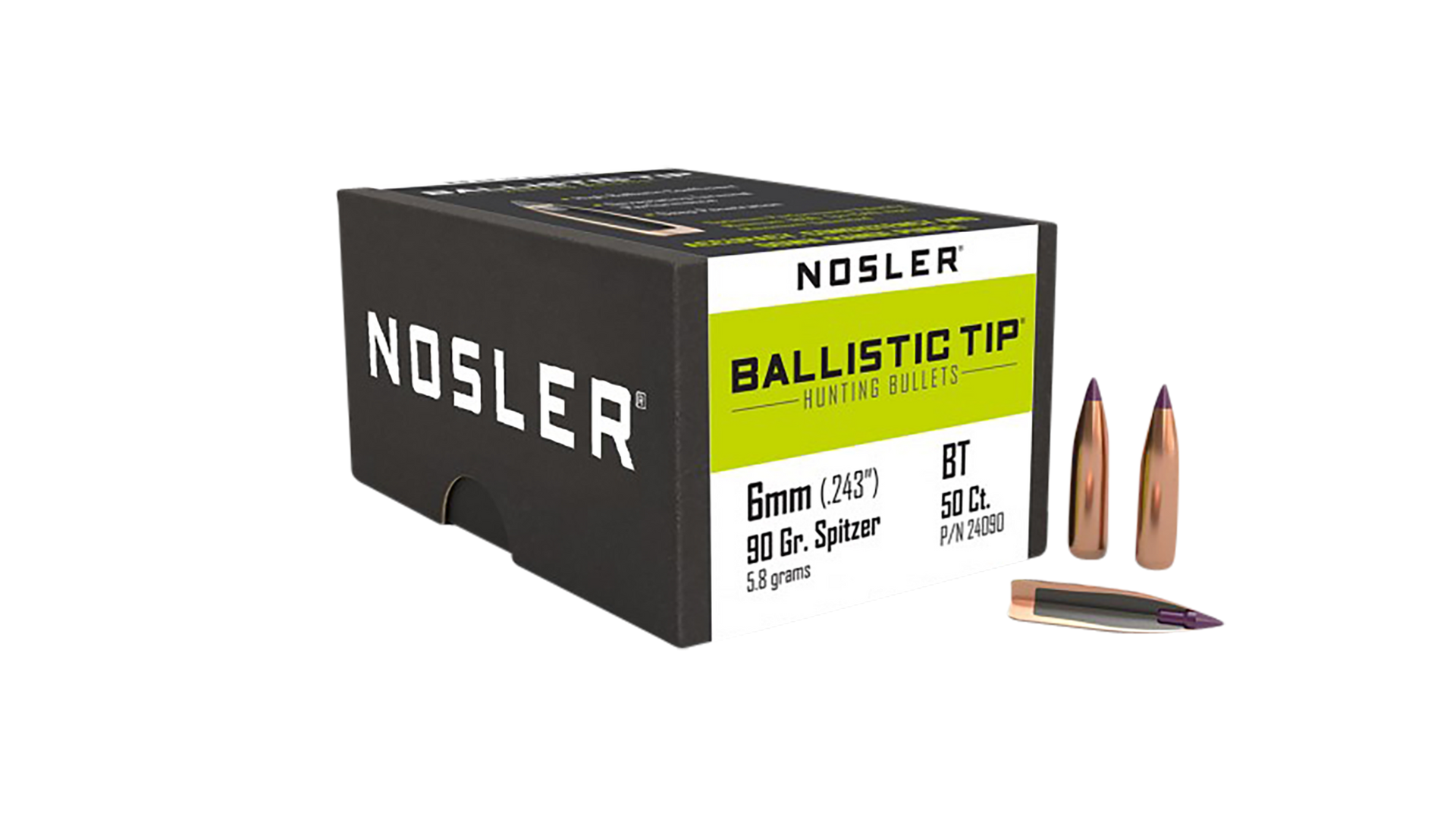 Nosler Ballistic Tip, Nos 24090 Blstc Hnt 6mm 90 Sptzr 50