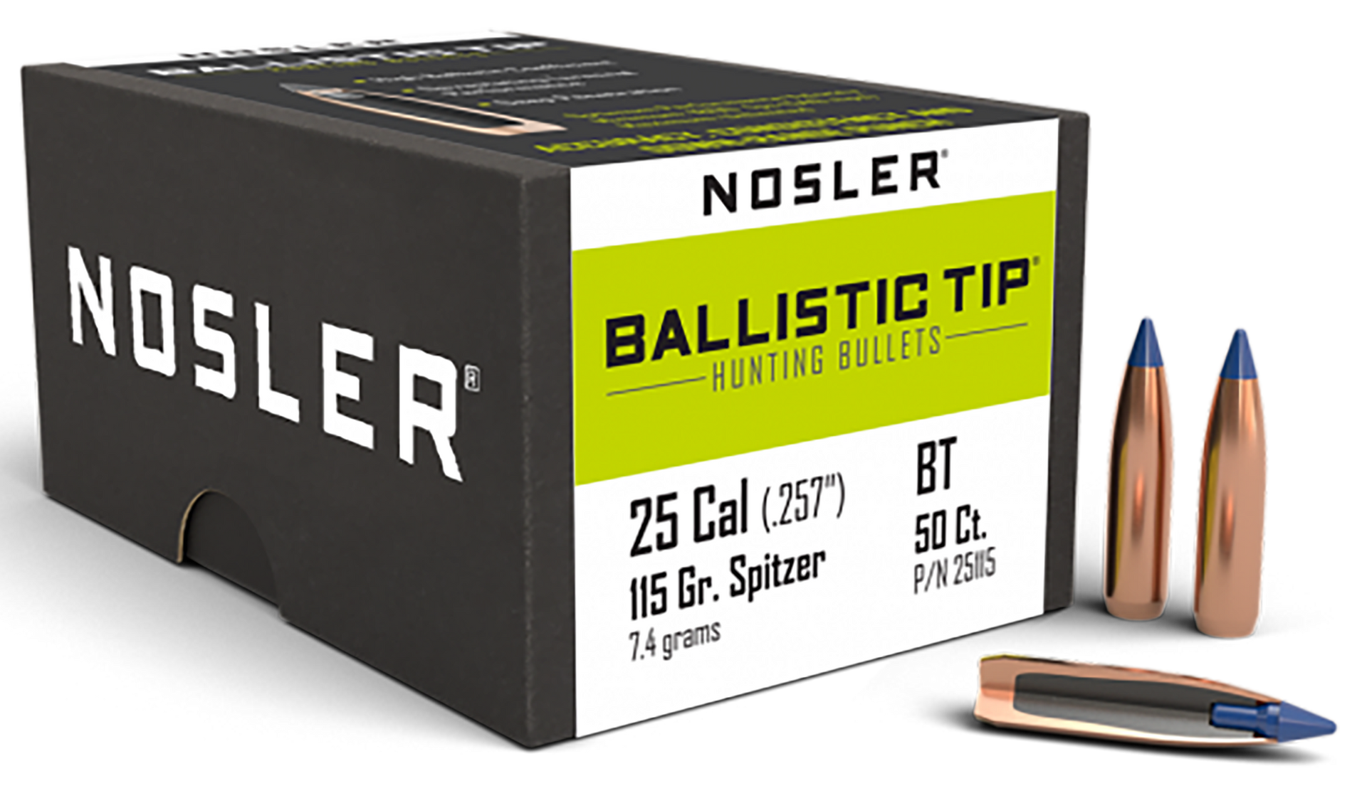 Nosler engineered the ballistic tip hunting bullet to be very predictable and extremely forgiving.The polymer tip resists deformation in the magazine, initiates expansion upon impact and is color-coded by caliber.The fully tapered jacket and special lead alloy core allows controlled expansion and optimum weight retention at all practical velocity levels.A heavy jacket base prevents bullet deformation during firing and acts as a platform for large diameter mushroom.Nosler's unique solid base boat-tail design, combined with the polycarbonate tip, dramatically increases long-range ballistic efficiency.
