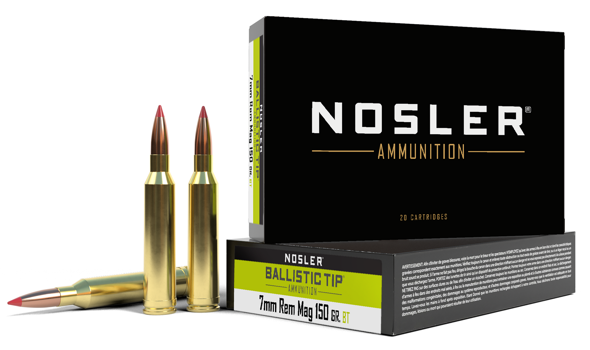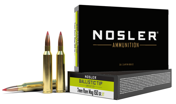 Nosler ballistic tip ammunition is loaded up front with the accurate and reliable, nosler ballistic tip bullet.Every bullet weight and muzzle velocity is optimized for maximum effectiveness on deer, antelope, and hogs.Caliber: 7mm RemBullet Type: Spitzer Ballistic TipBullet Weight: 150 grMuzzle Energy: 3098 ft lbsMuzzle Velocity: 3050 fpsRounds Per Box: 20Boxes Per Case: 10Application: HuntingCasing Material: BrassHazair: YesView more