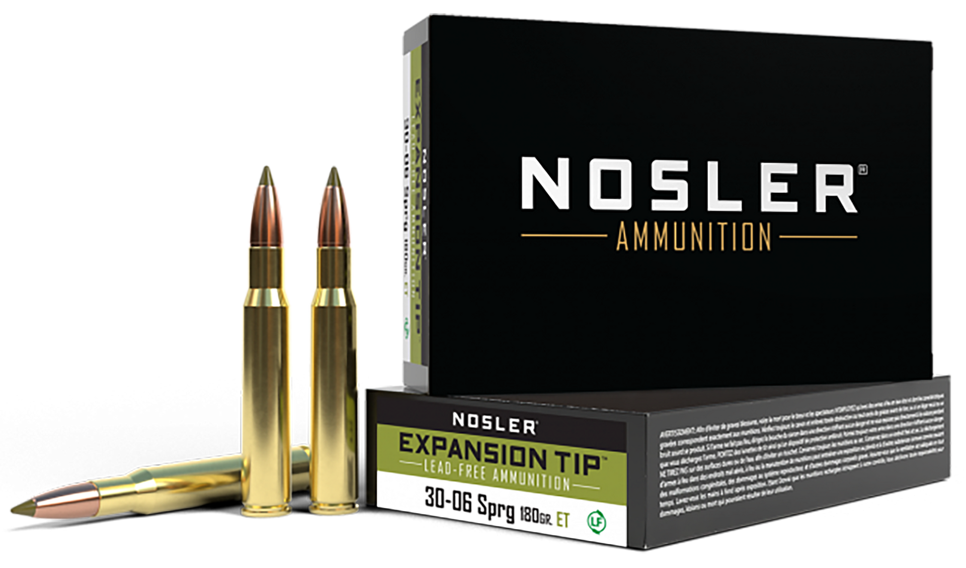Nosler e-tip, lead-free, ammunition is loaded up front with the high-performance, lead-free, e-tip hunting bullet.The e-tip bullet combines uniform expansion with 95%+ weight retention for superior penetration and excellent terminal performance on all types of big game.