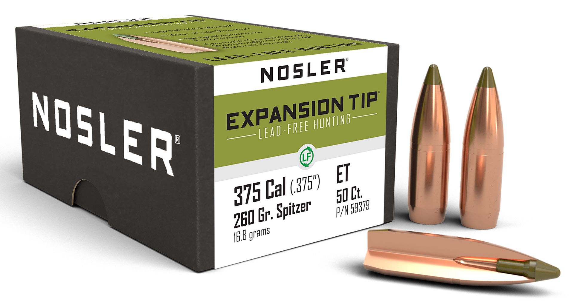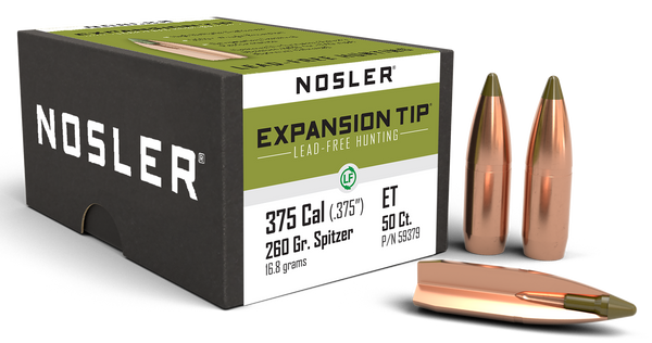 Nosler's e-tip, lead free, expansion tip bullets upon impact, nosler's exclusive e cavity (energy expansion cavity) allows for immediate and uniform expansion, yet retains 95% weight for improved penetration.The e cavity provides amazing stopping power and peerless penetration over a broad spectrum of impact velocities, rivaling even the highest quality lead-core bullets.