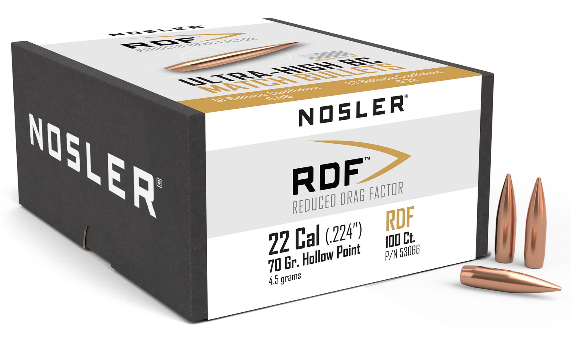 For those wanting to squeeze the most performance from their competition rifle, nosler's rdf (reduced drag factor) match bullet line is the ideal choice.The rdf line was designed from the ground up to provide exceptionally high bcs, which create the flattest trajectory and least wind drift possible.The keys to the rdf's outstanding performance are nosler's meticulously optimized compound ogive and long, drag-reducing boattail, which make...View more