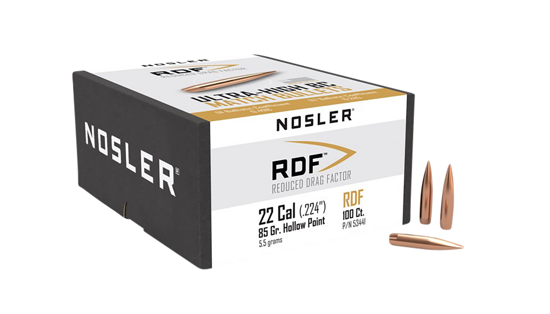 For those wanting to squeeze the most performance from their competition rifle, nosler's rdf (reduced drag factor) match bullet line is the ideal choice.The rdf line was designed from the ground up to provide exceptionally high bcs, which create the flattest trajectory and least wind drift possible.The keys to the rdf's outstanding performance are nosler's meticulously optimized compound ogive and long, drag-reducing boattail, which make handloading a snap and create an incredibly sleek form factor.Rdf bullets also have the smallest, most consistent meplats of any hollow point match bullet line, so there is no need to point or trim tips.