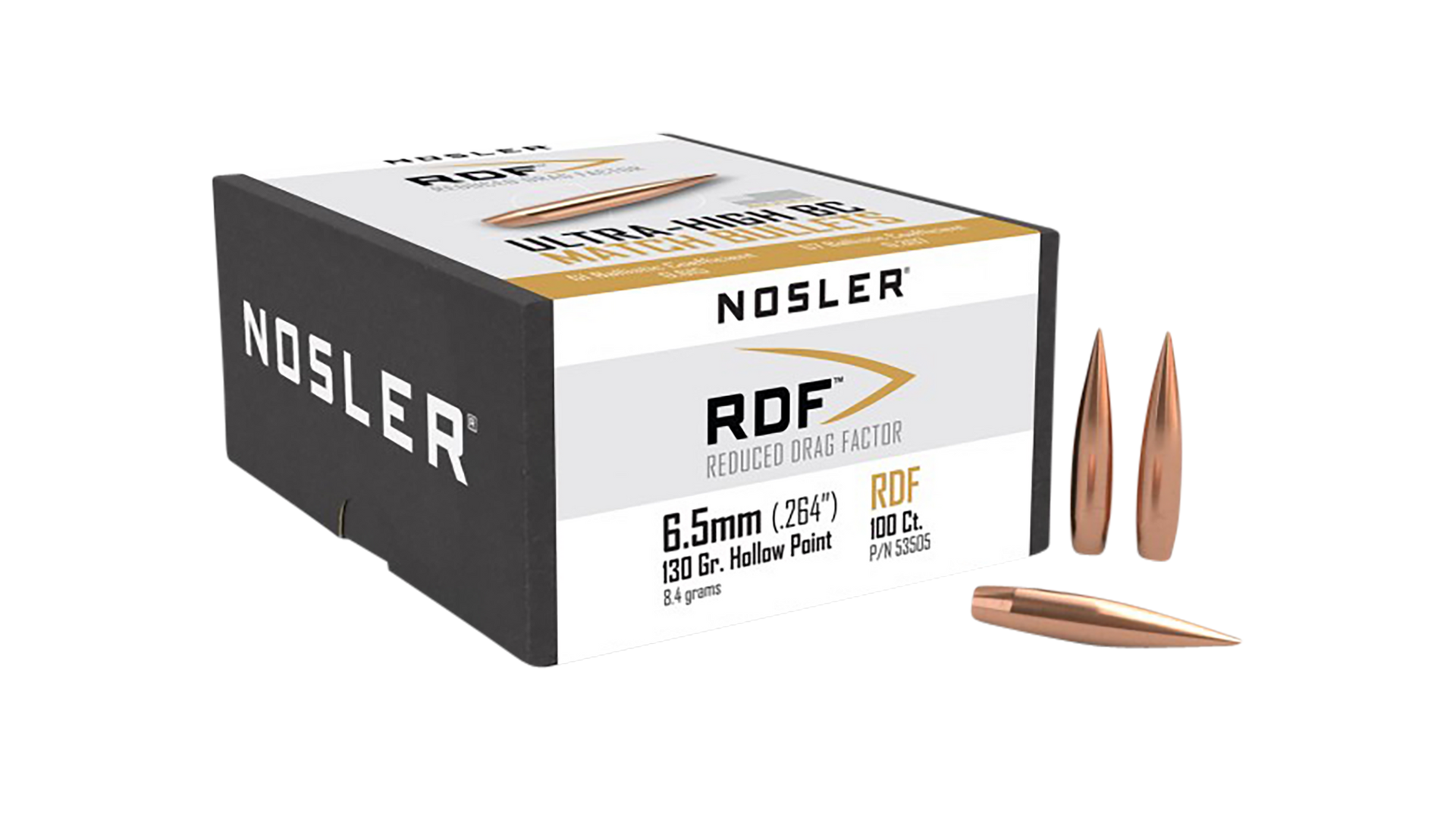 For those wanting to squeeze the most performance from their competition rifle, nosler's rdf (reduced drag factor) match bullet line is the ideal choice.The rdf line was designed from the ground up to provide exceptionally high bcs, which create the flattest trajectory and least wind drift possible.The keys to the rdf's outstanding performance are nosler's meticulously optimized compound ogive and long, drag-reducing boattail, which make handloading a snap and create an incredibly sleek form factor.Rdf bullets also have the smallest, most consistent meplats of any hollow point match bullet line, so there is no need to point or trim tips.