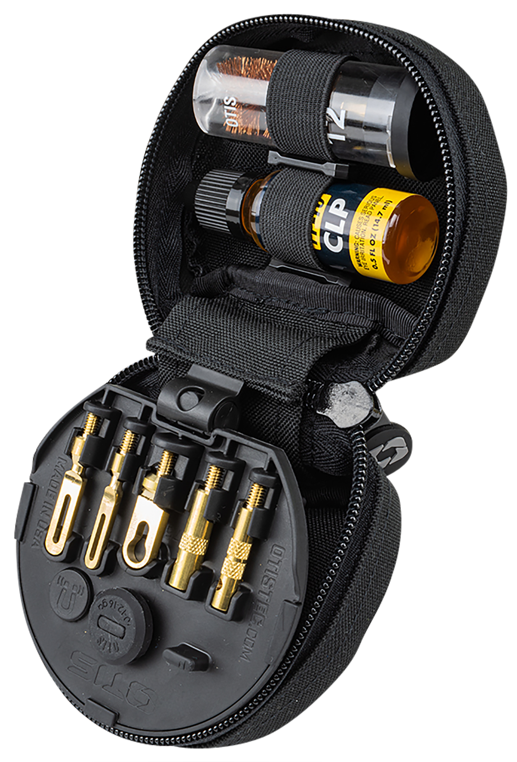 Otis 3-gun competitions cleaning kit has your.223 cal/5.56mm rifle, 9mm pistol and 12 ga shotgun maintenance needs covered.The kit includes: 100% cotton 10- 2" and 10- 3" patches; small, large and shotgun slotted tips; large patch saver; three firearm specific bronze bore brushes with size marked on brush stem (.223cal, 9mm, 12 ga); 8" and 30" aircraft grade memory-flex cables for proper breech-to-muzzle cleaning (8"...View more