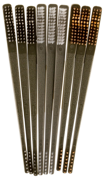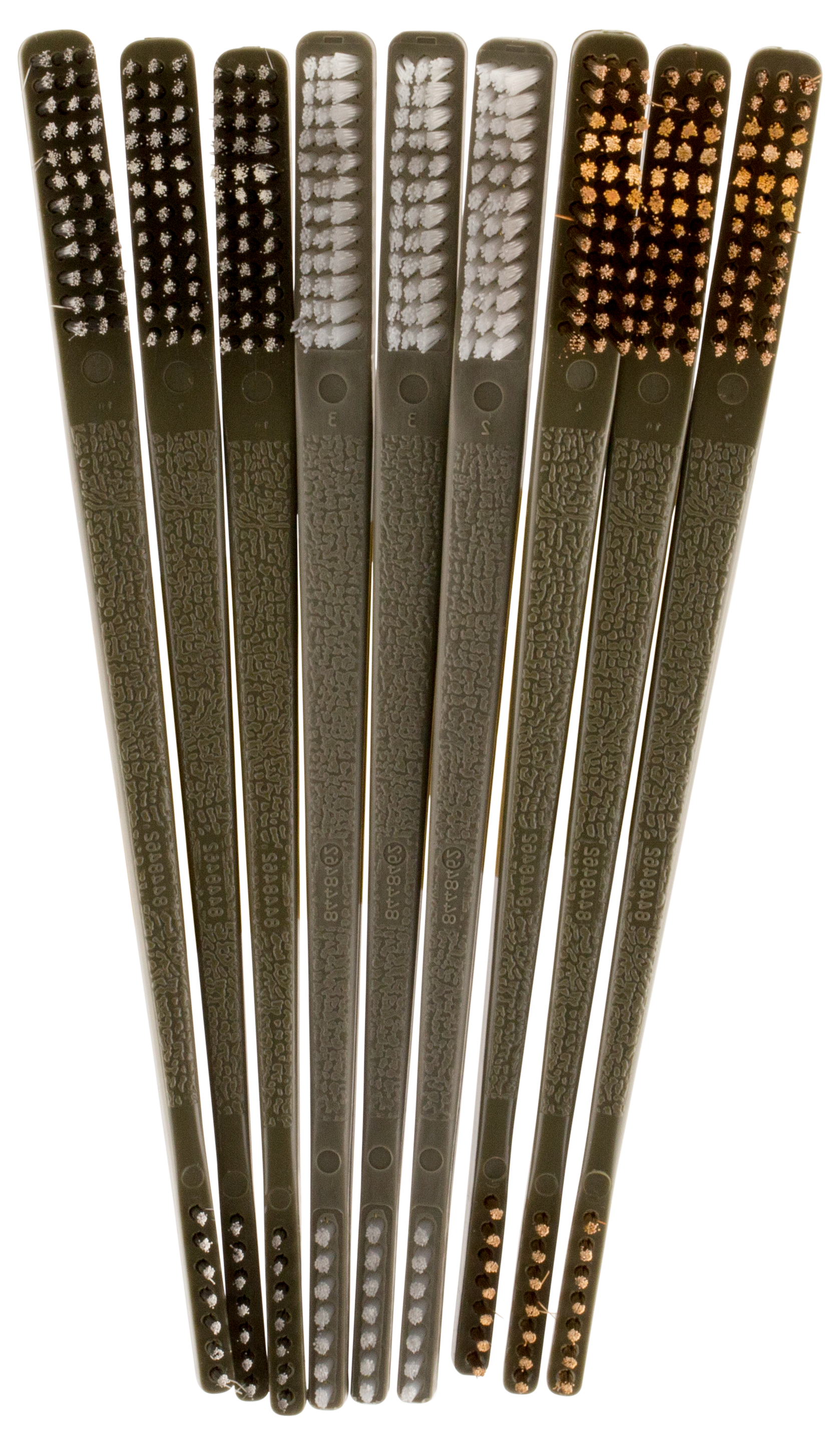 Otis all purpose receiver brushes allows you to choose the right brush for the right project.The nylon brushes are the least aggressive, meet mil.Spec.And are safe for everyday use.Recommended for use on virtually any surface including wood surfaces.The bronze and stainless steel brushes give you the ability to scrub hard to reach places where carbon, powder and copper residue build up.Includes 9 brushes total: three bronze, three nylon and three stainless steel.