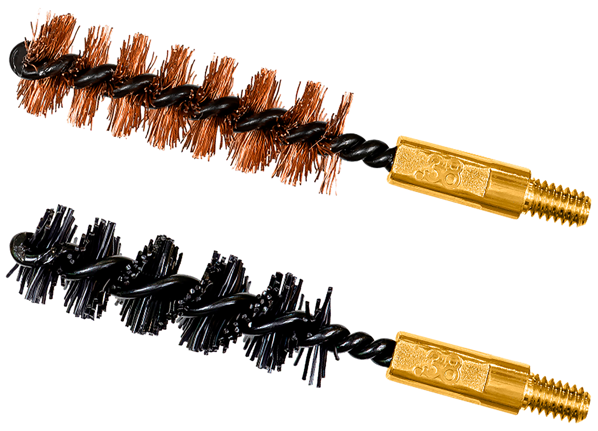Otis brushes have a proprietary tufcor core wire that is corrosive-resistant with a tighter twist for better bristle retention and brush life.Includes: 1 nylon brush 1 bronze brush.Cleans: 9mm/.38spl/.380/.375 cal.