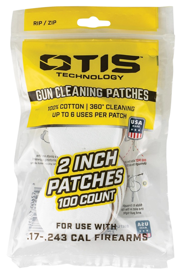 The small caliber patches are designed specifically for.17 caliber to.22 caliber rimfire.Each patch is 100% cotton and can be used up to 6 times.When attached to the slotted tip, they form a perfectly circular cleaning swab to allow for 360 degree coverage.