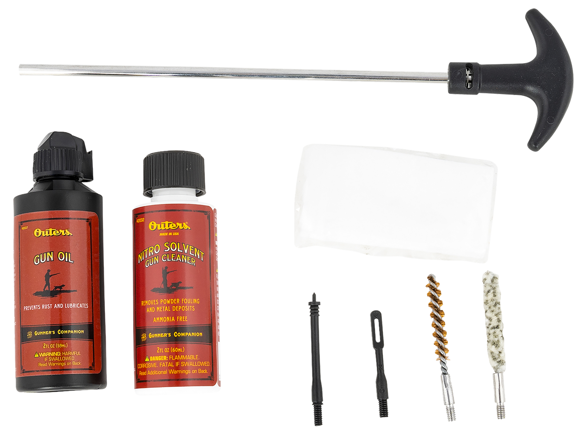 Easy-to-use aluminum rod pistol kit includes lightweight cleaning rod; phosphor bronze bore brush; wool blend mop; spear pointed jag; slotted patch loop; micro-fiber absorbent patches; nitro solvent gun cleaner 2oz and gun oil 2oz.Caliber Or Gauge: .22 CalType: Cleaning KitSize: .22 CalPieces: 1 KitBristle Type: BronzeIncludes: Rods/Tips/Patches/ChemicalsCase Material: AluminumHazair: YesView more