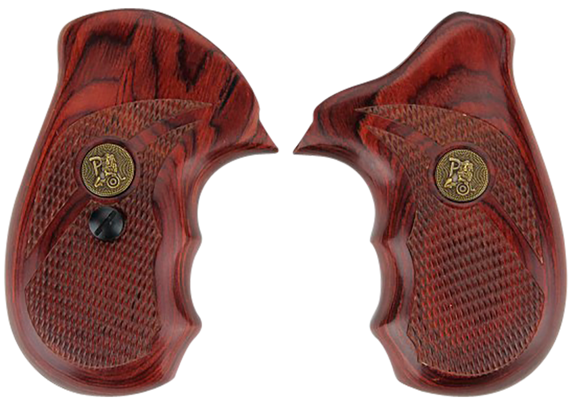 Pachmayr's deluxe laminate revolver grips are the ultimate in style and function.The highly polished wood laminate panels feature precision cnc cut checkering for a secure grip while maintaining an attractive appearance.The rosewood finish provides classic good looks.These checkered rosewood grips are compatible with smith & wesson round butt, j frame revolvers.