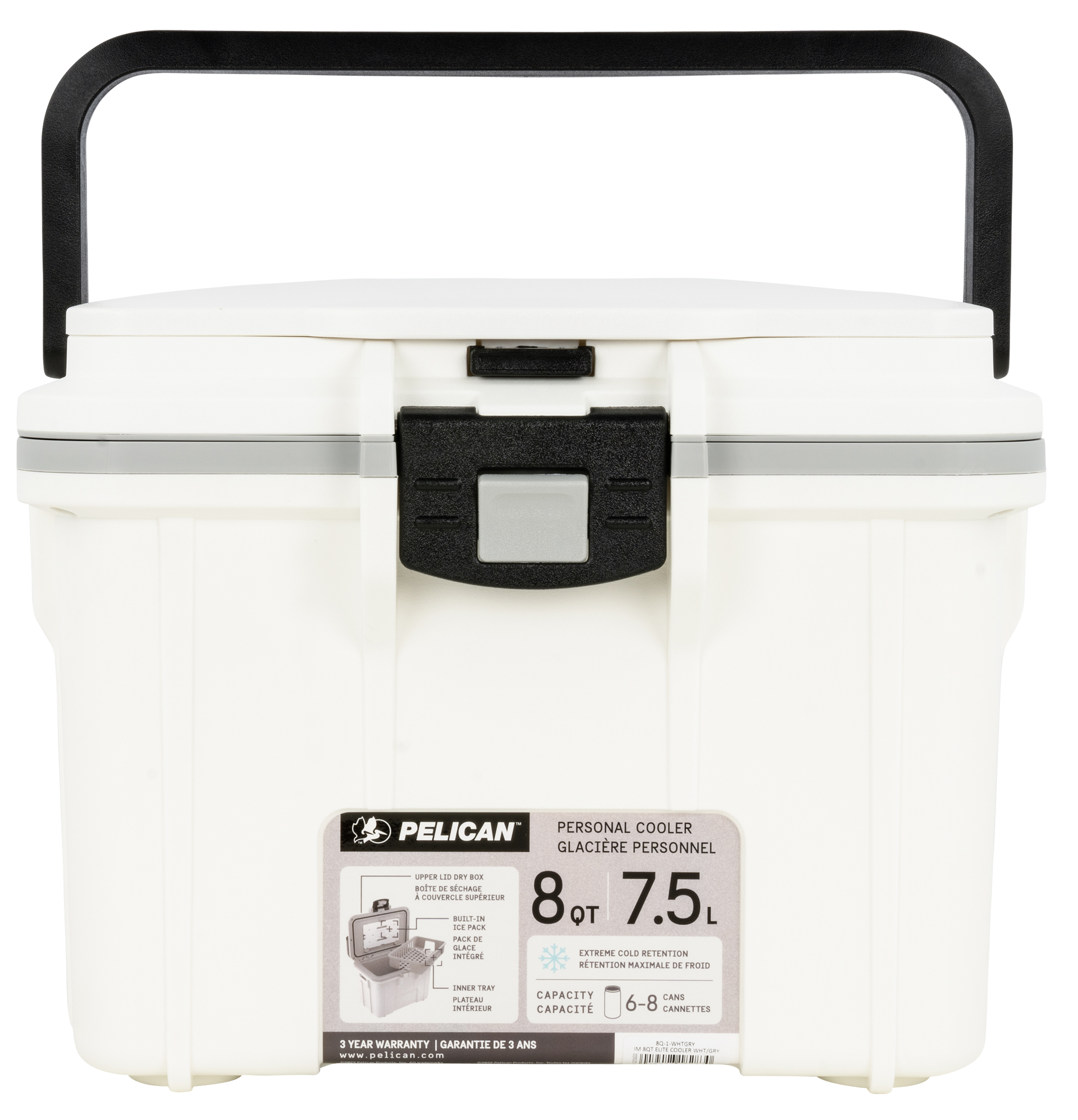 Pelican Personal Cooler, Pelican 8q-1-whtgry 8qt Elite Cooler Wht/gry