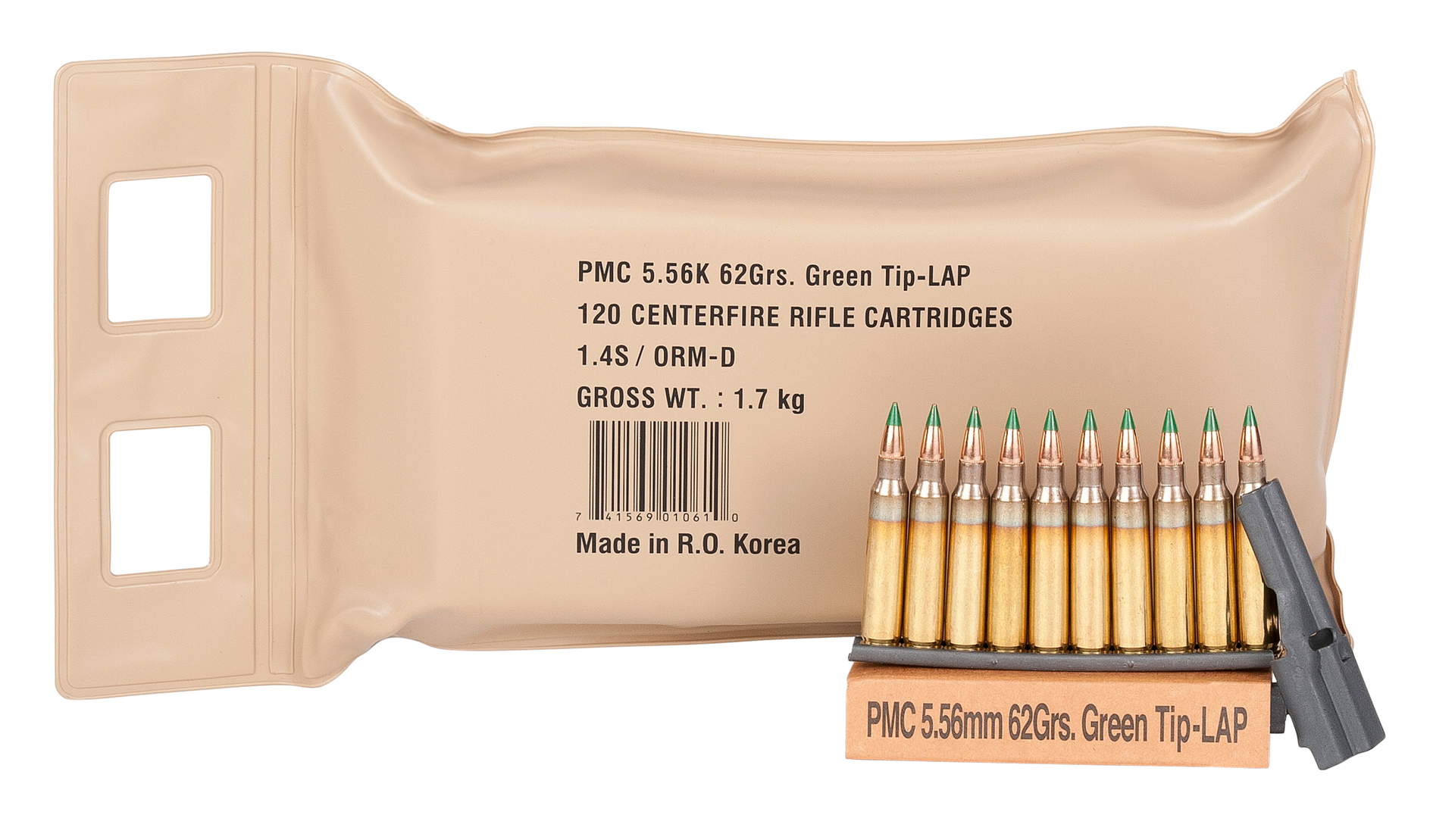Pmc's x-tac is the choice for the professional and enthusiast alike.The battle packs are built to take a beating to keep your pmc ammunition safe and secure.Pmc battle packs are vacuum-sealed and wrapped in a high-density advanced polymer sleeve.Inside the battle packs, ammo is packaged in regular pmc boxes.Caliber: 5.56x45mm NATOBullet Type: Light Armor Piercing Green TipBullet Weight: 62 grMuzzle Energy: 1323 ft lbsMuzzle Velocity:...View more
