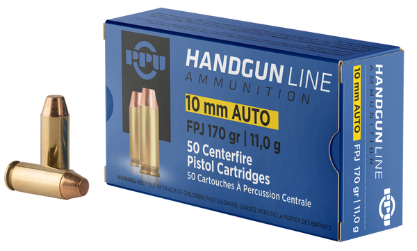 Ppu's handgun ammunition is brass-cased, non-corrosive boxer primed and features improved bullet designs which result in greater energy performance, bullet expansion, and reliability.