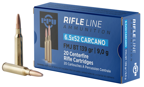 Ppu's high-quality metric rifle ammunition accommodates the large assortment of foreign military and commercial firearms that have entered the u.S.Market since wwii.Caliber: 6.5x52mm CarcanoBullet Type: Full Metal Jacket Boat TailBullet Weight: 139 grMuzzle Energy: 1968 ft lbsMuzzle Velocity: 2525 fpsRounds Per Box: 20Boxes Per Case: 10Application: Target ShootingCasing Material: BrassHazair: YesView more