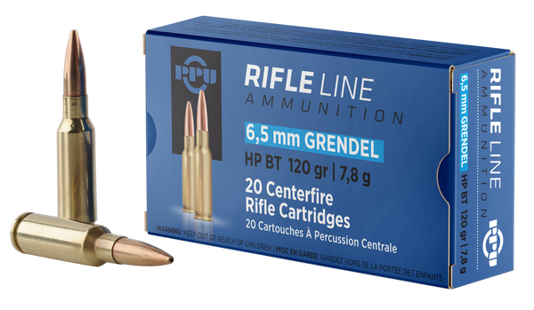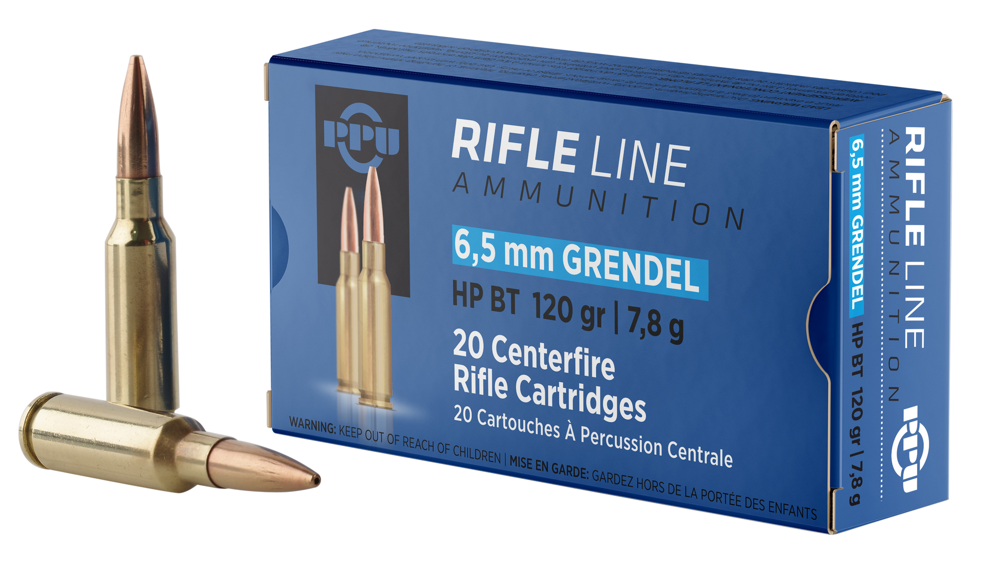 Ppu's standard line of rifle ammunition is designed especially for big game hunting.Only the best quality components are used during production to ensure that these cartridges are accurate, dependable, and effective.Caliber: 6.5 GrendelBullet Type: Hollow Point Boat TailBullet Weight: 120 grMuzzle Energy: 1905 ft lbsMuzzle Velocity: 2674 fpsRounds Per Box: 20Boxes Per Case: 25Application: HuntingCasing Material: BrassHazair: YesView more
