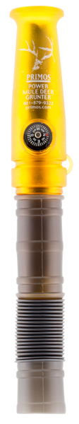 The power mule deer & blacktail grunter with a built-in compass reproduces throaty grunts and estrus bleats with a simple inhale-exhale operation.It is perfect for mule deer and blacktail deer, especially during the rut.Type: Grunt CallSpecies: Blacktail/Mule DeerMaterial: Plastic/Collapsible HoseSound Species: Mule DeerElectronic: NoBattery Size: N/AColor: Black/GoldStyle: HandProofs: Water ResistantDifficulty Level: EasyPreset Features: N/AHands Free: NoSounds: Buck Grunt/Doe BleatView more