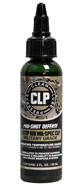 1 step bio mil-spec clp is a bio formula highly penetrating fluid specifically designed to clean, lubricate and protect your firearms and weapon systems.Based on synthetic oil and containing anti-corrosion and anti-wear additives, it has been formulated to keep small and large caliber weapons combat-ready in the harshest of environments (desert, snow, tropical, saline, etc.).1 step bio mil-spec clp is virtually odorless.It facilitates the effective removal of firing residues, gums and other contaminants from weapon components and is compatible with all metals and alloys used in weapons.