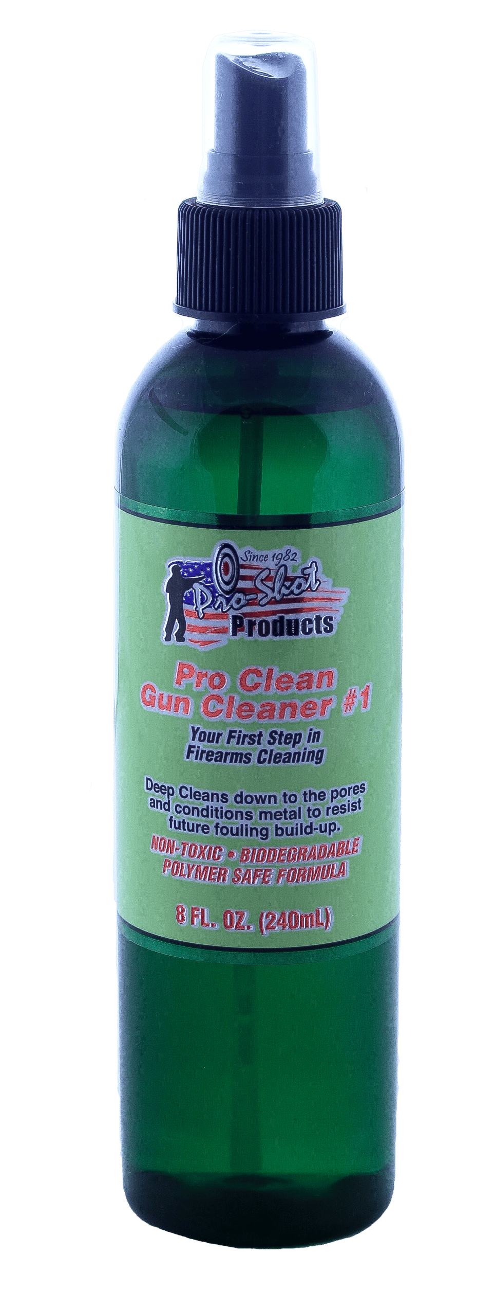 Pro-shot non-toxic, non-hazardous pro-clean #1 gun cleaner features a biodegradable formula that provides superior protection with rust and corrosion inhibitors.It removes carbon, firing residue, oil & grease, powder, lead & copper fouling.The cleaner also reduces your cleaning time and improves accuracy and reliability.