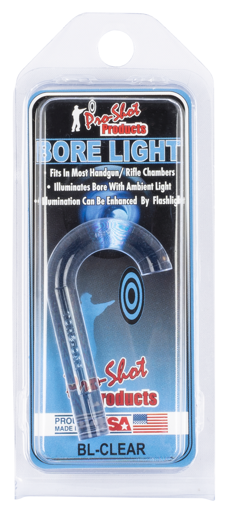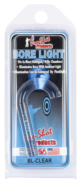 The uv bore light illuminator is a fast and easy way to check barrels for cleaning or wear.Just insert the short end into the firearm chamber and watch the fiber optic tool light up your bore for inspection.No batteries needed, it's ready anytime, whether you are at home or in the field.Excellent for.22 centerfire and up, great for 9mm.