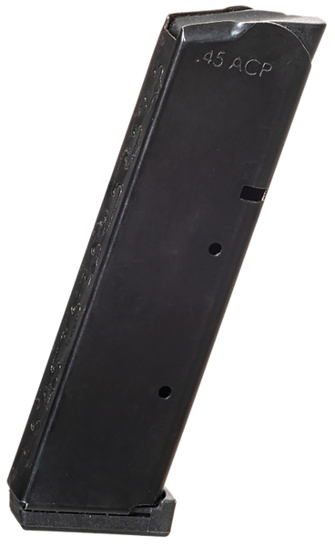 The 1911 government model.45 acp pistol magazine body is constructed of heat treated steel with black nitrite finish.Injection molded magazine.Magazine spring formed from heat treated chrome silicon wire.