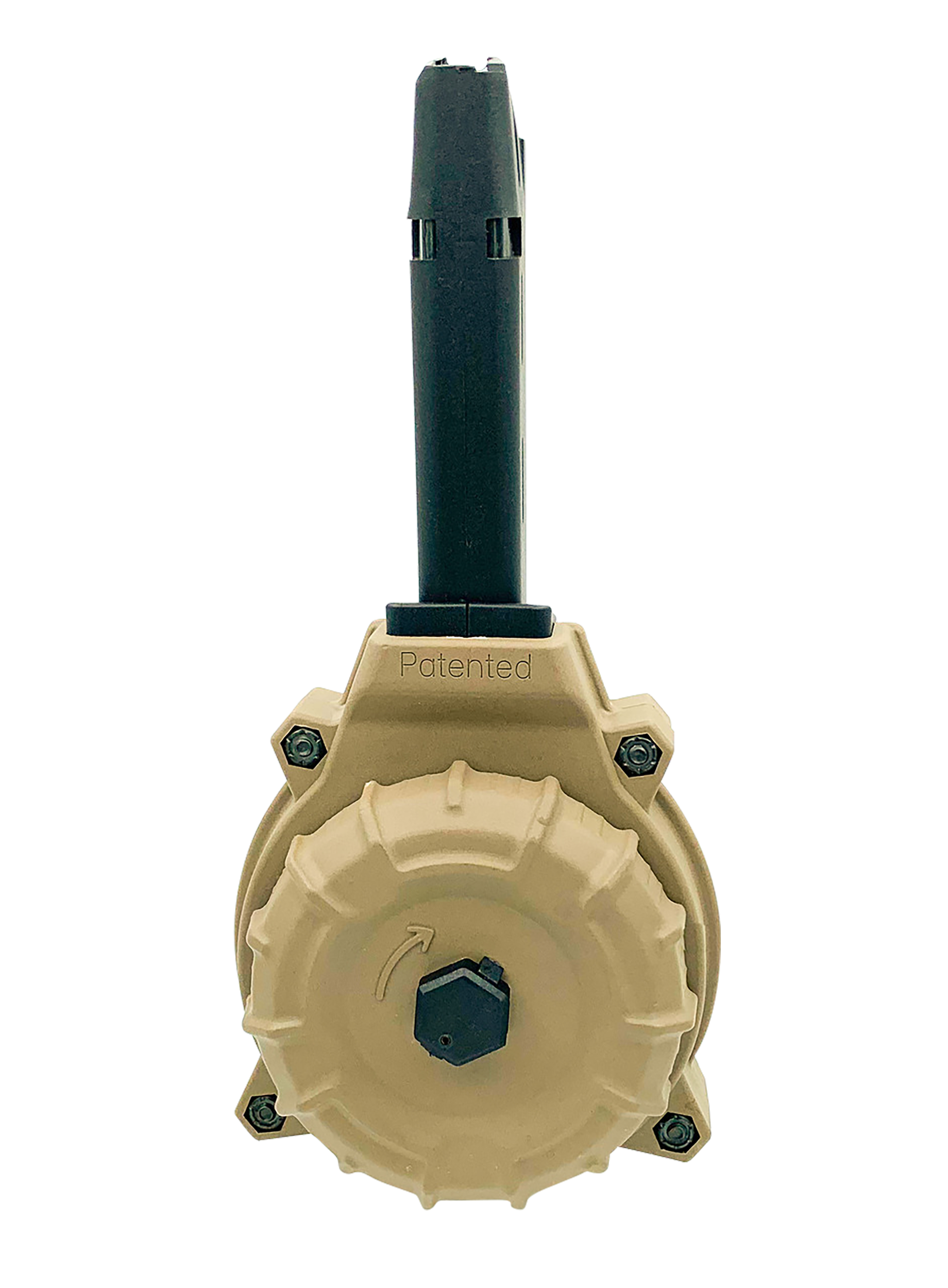Fits the glock model 17/19 9mm (50) rd - flat dark earth polymer drumCaliber: 9mmCapacity: 50rdMaterial: PolymerCapacity: 50Hazair: Yes