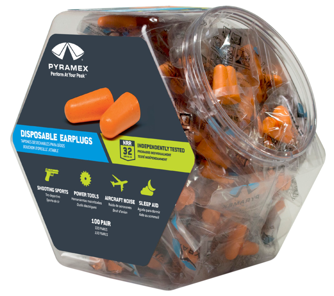 The disposable soft foam earplugs gently expand, and self-adjust to all size ear canals.This model comes in a display bin of 100 pair.